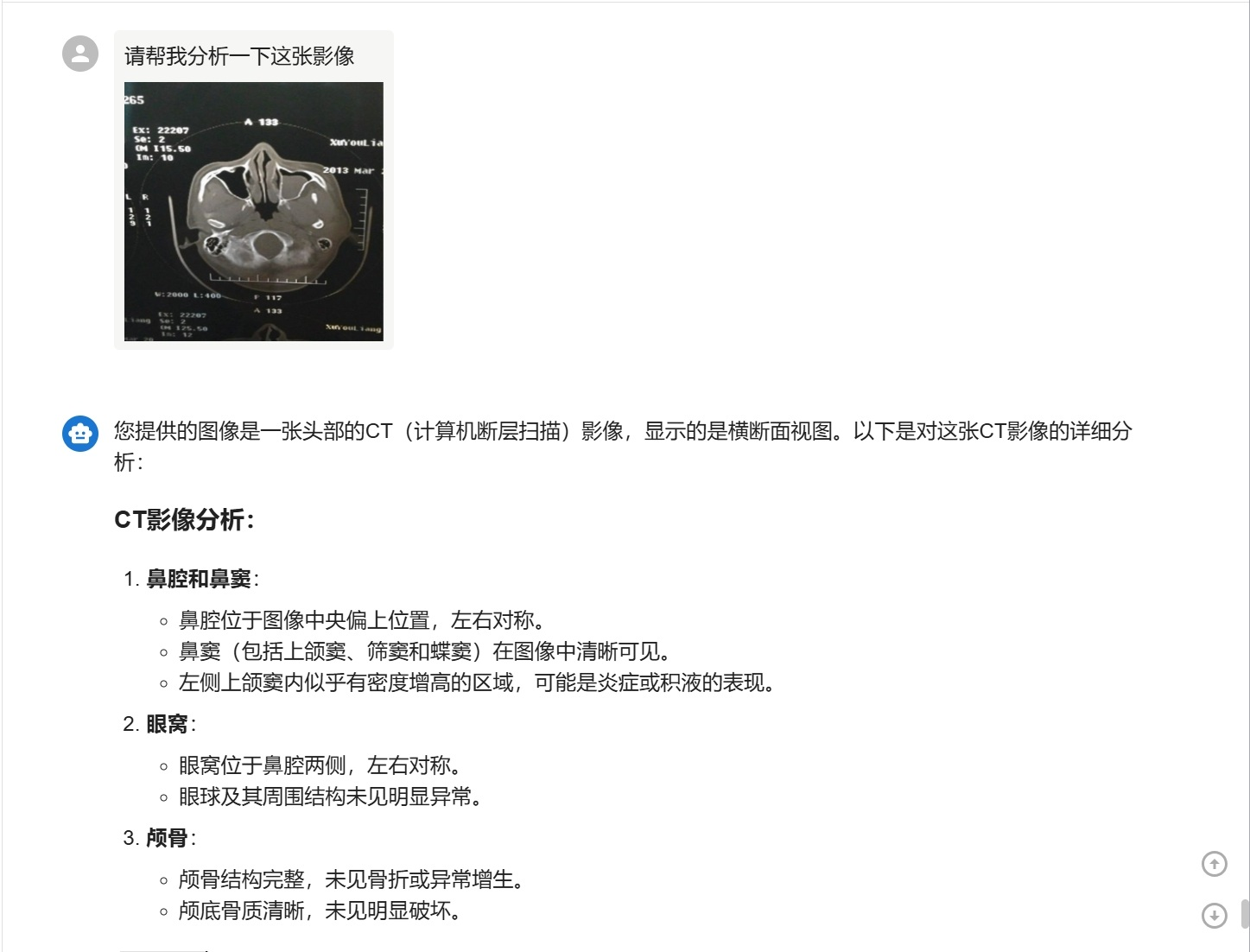 在专业领域,Qwen-2.5-VL系列模型还可对医学影像进行智能分析并给予决策参考。以鼻窦炎CT影像为例,模型能够精准识别鼻窦区域的黏膜厚度、窦腔积液、骨质结构改变等特征,为临床诊断给予量化分析依据。