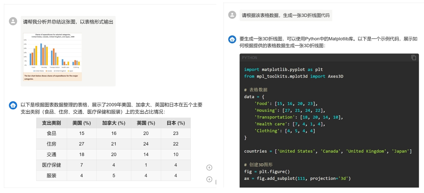 此外,Qwen3模型还支持多语言理解,能精准识别柱状图中美国、加拿大、英国、日本在食品、住房等5类支出的占比数值并输出结构化数据 ,同时基于结构化数据生成演示代码。