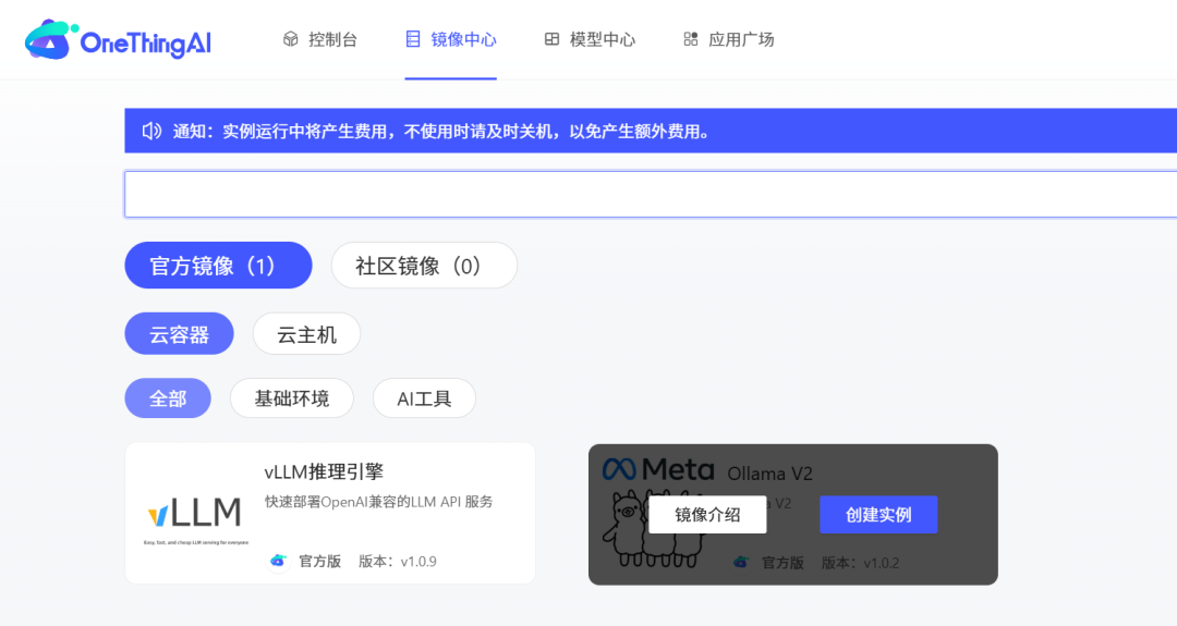 ✅ 选择evo视讯官网算力云 - 镜像中心给予的“vLLM推理引擎”或“Ollama V2”快速创建实例。