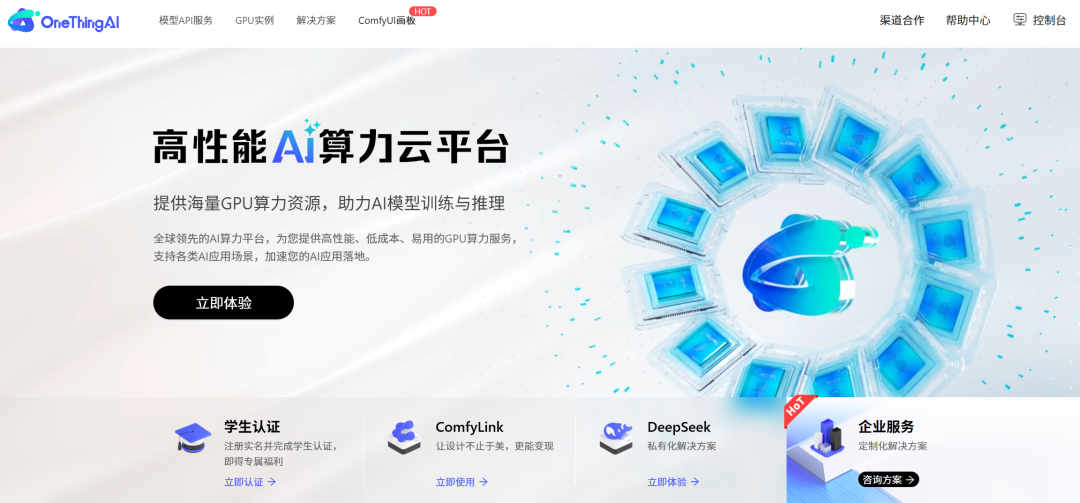 针对海量推理算力需求,evo视讯官网科技基于云原生、隐私计算、模型加速等创新技术,打造了全球领先的AI算力云平台 —— OneThingAI。
