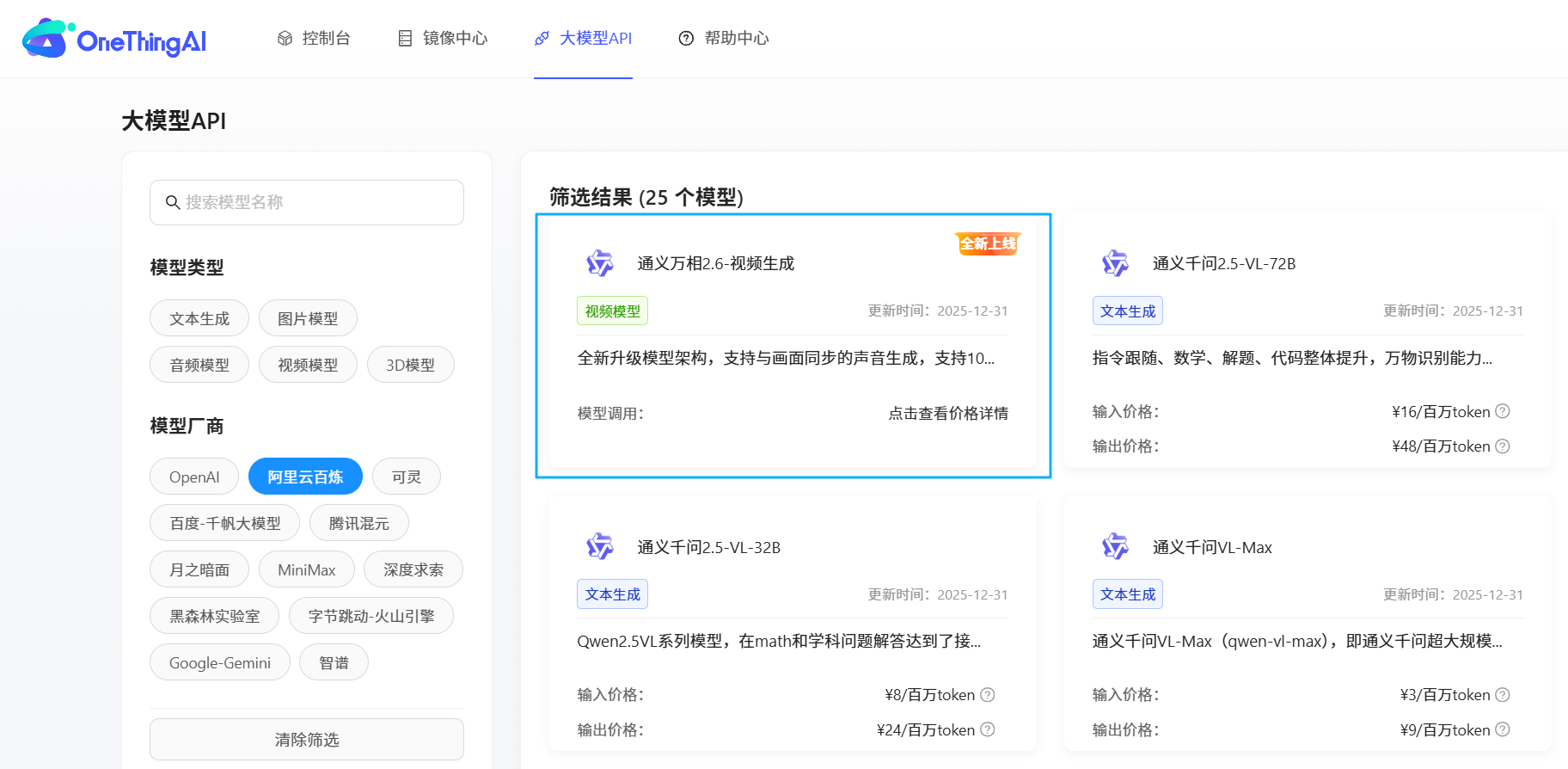 Wan2.6: http://console.onethingai.com/modelApi/list/detail/wan2.6-video