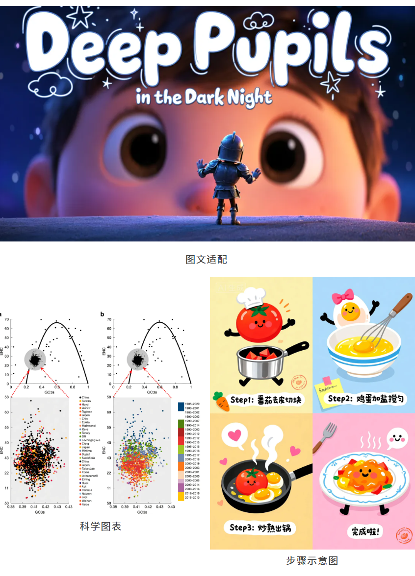 输入 Prompt,AI 会自动理解内容并完成专业的图文排版,实现图 + 文案到成品的“一键转化”。