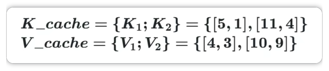 现在可以读取 K_cache,V_cache 用于计算 X₃ 输入后的 attention score 了,不用再重复计算 X₁、X₂的 QKV,为了简化表达我们先更新 cache,然后再进行计算。