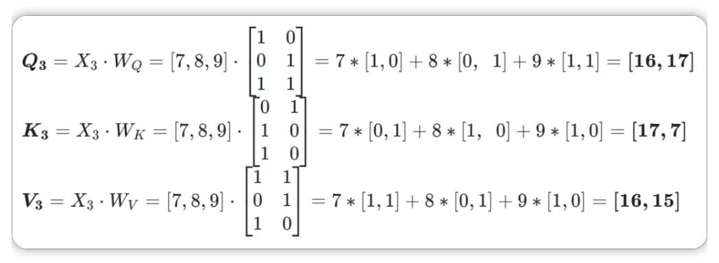 让我们先看一个简单的情况,假设输入是 3 维的X₁、X₂ 和 X₃,在支持 kv-cache 的情况下,每个 Attention 层计算本层的输出向量过程如下: